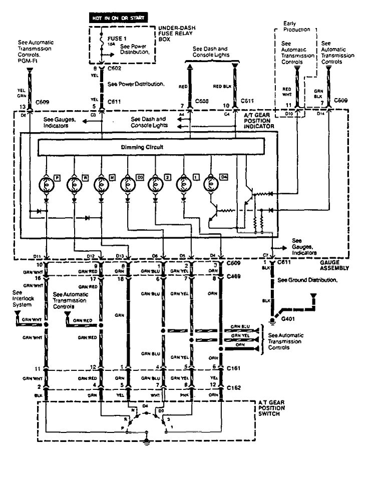 Acura Vigor (1994) – wiring diagrams – shift indicator