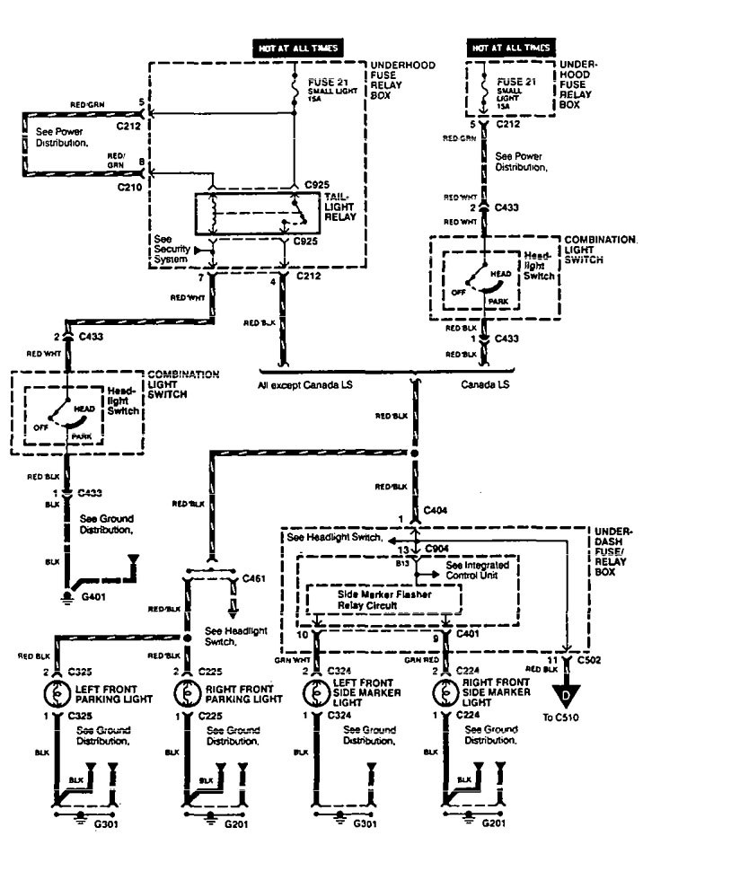 Acura Vigor – wiring diagram – side marker lamp (part 1)