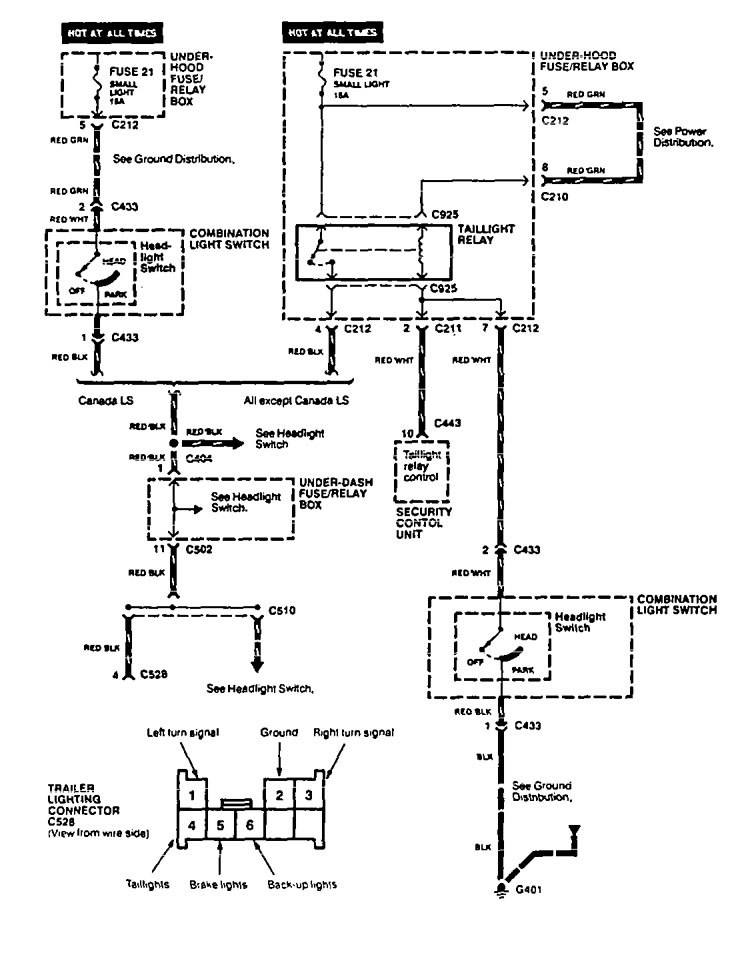 Acura Vigor (1994) – wiring diagrams – trailer/camper adapter