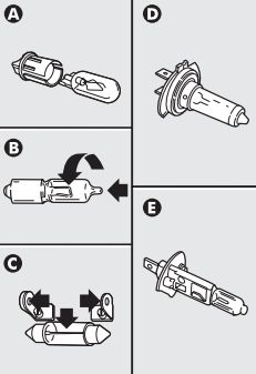 B – Bayonet type bulbs Press the bulb, turn counter-clockwise to remove this type of bulb from its holder