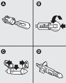 B – Bayonet type bulbs Press the bulb, turn counter-clockwise to remove this type of bulb from its holder