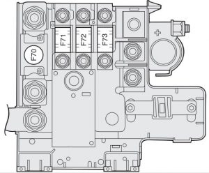 | Engine compartment control unit | F70 (MEGA-FUSE) | 150 | Battery (positive pole) |