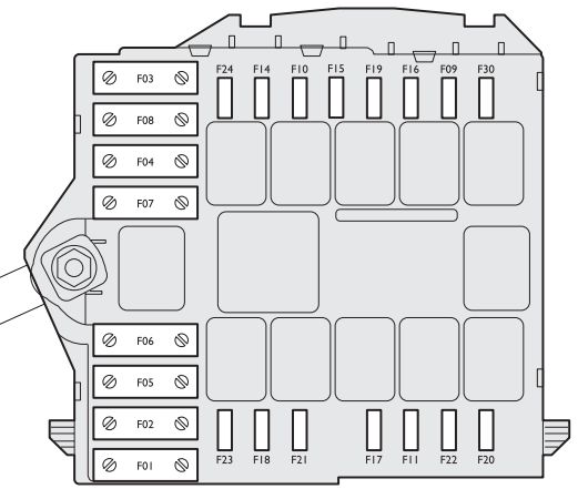 | Boot control unit | F01 (MAXI-FUSE) | 70 | Battery |