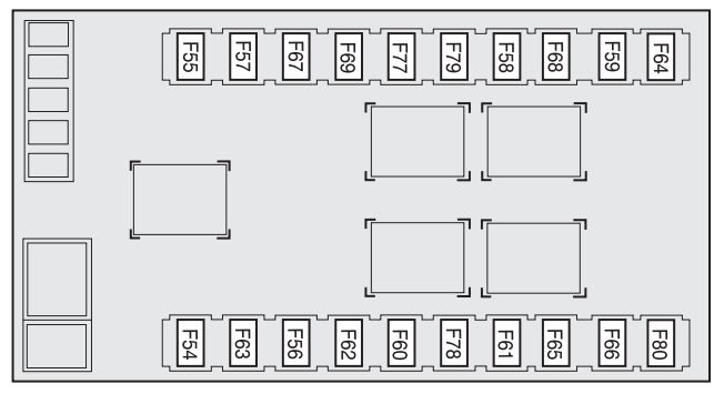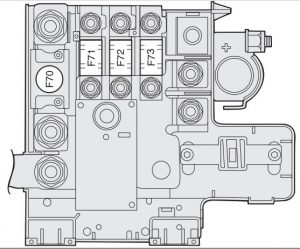 | Engine compartment control unit | F70 (MEGA-FUSE) | 150 | Dashboard |