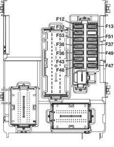 | Parking sensor control unit, rain/dusk sensor on interior rear view mirror, electrochromic sensor on interior rear view mirror, seat belts fastened warning light display on interior rear view mirror, control panel lighting (central control panel, driver side control panel, control panel on steering wheel), heater pad activation switches on front seats, alarm system volumetric sensor control unit, electric sun roof control unit | F49 | 5 |