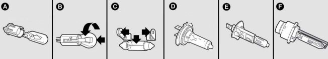 B – Bayonet type bulbs:press the bulb, turn counter-clockwise to remove this type of bulb from its holder