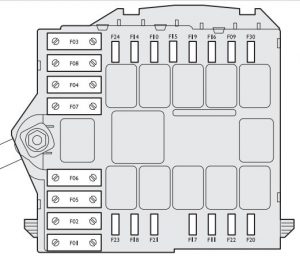 | Engine compartment control unit | F70 (MEGA-FUSE) | 150 | Dashboard |