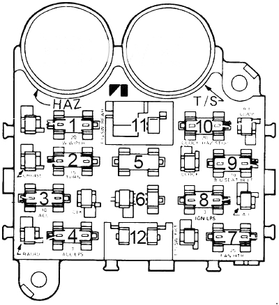 | 1 | 20 | Turn signal, back-up lights, radio, windshield washer |