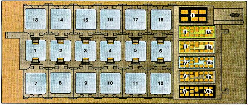 | VI | up to 1990: A/C fresh air blower, J11 from 1990: Radiator cooling fan high speed relay, J101 |