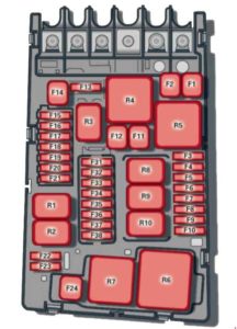 | 4 | Engine cooling, engine components, auxiliary heater coil relay (1+2), secondary air injection pump relay |