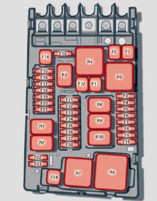 | F24 | Panorama sunroof/ power top control modu le, power top latch (Cabriolet) | 20 |