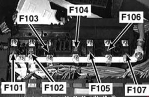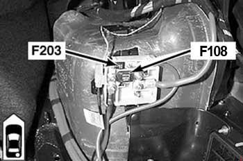 | 203 | 100 | DDE relay Fuse carrier, engine electronics (fuse No.4 (30A) – DDE4.0 or EGS Transmission control GM5) |