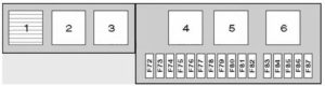| F6 | 5A | Interior rearview mirror, parking aid control module(until 02/04), tyre pressure monitor control module |