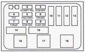 Year of production: 2011 Engine Compartment Fuse Block The Engine Compartment Fuse Block is located in the engine compartment, on the driver side of the vehicle. Fuses Usage 1 Right Trailer Stop/Turn Lamp 2 Electronic Stability Suspension Control, Automatic Level […]