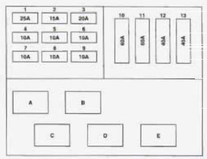 | 7 | 10 | Primary Cooling Fan, A/C Compressor Relay |