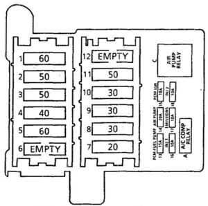 | 20 | A/C COMP | A/C Compressor Relay, Primary Engine Cooling Fan Relay |