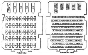 | 15 | PCM/IGN | 10 amp power to Powertrain Control Module (PCM), Electronic Transmission Ignition Coil, Electronic Brake Control Module |