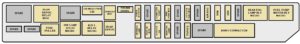 The driver’s side rear fuse block is located under the rear seat on the driver’s side of the vehicle. The rear seat cushion must be removed to access the rear fuse block.