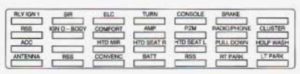 | IGN 1 | Rear Ignition-1 Relay, Wiper Fuse, Relay Ignition- 1 Fuse, Supplemental Inflatable Restraint (SIR) Fuse, Accessory Relay |