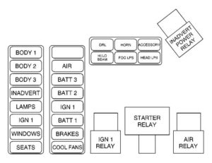 | INADVERT | Inadvertent Power Relay, Interior Lamps Fuse, Cigarette Lighter-1 Fuse, Courtesy Lamp Relay |