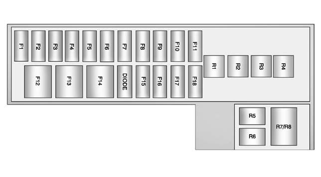 | F5 | 7,5 | Body Control Module 2/ Body Control Module Electronics/ Trunk Lamp/ Right Daytime Running Lamp/Shifter Lock/Switch Backlighting |