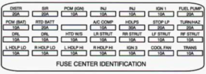 | FUSE 4 | IPC | 30 | POWERTRAIN CONTROL MODULE (PCM), ELECTRONIC CLIMATE CONTROL, RAP/ILLUMINATED ENTRY MODULE, INSTRUMENT PANEL CLUSTER, PASSKey DECODER MODULE, THEFT DETERRENT |