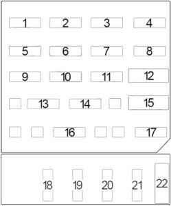 | 11 | 20 | Glove Box Light, Cigarette Lighter, Hatchback Lid Release, Horn Relay, Interior Lights, Power Antenna, Power Door Locks, Radio/Digital Clock, Computer Command Control |