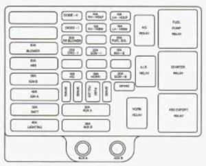 The fuse block access door is on the driver’s side of the instrument panel below the