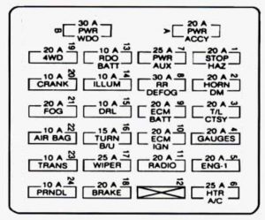 | 3 | T/L CTSY | Park Lamps, License Plate Lamps, Electric Shift Transfer Case Module, Under Hood Lamp, Rear Wiper, Fog Lamp Relay, Door Switch Lamp |