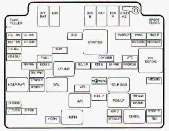 The fuse block under the hood at the driver’s de of the engine compartment.
