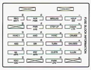 The fuse block is in the instrument panel on the driver’s side.