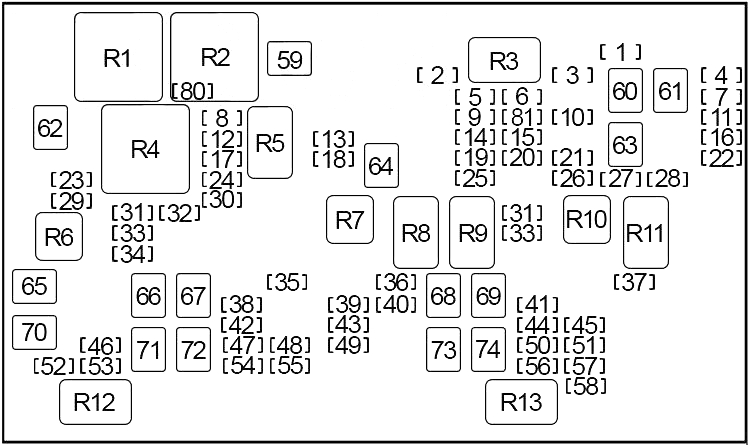 DRIVER SEAT 2 Circuit Breaker, PASS SEAT 1 Circuit Breaker, PWR REAR WNDW Circuit Breaker, RT DOORS Circuit Breaker |