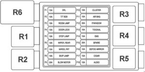 | F10 | 10 | Cluster, Tell Tale Box, Stop Lamp, Battery Saver, Anti-theft Control Unit, O/D Switch |