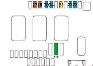 | F19 | 30 | Windscreen wipers slow/fast speed |
