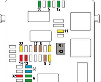 | F17 | 3 | Sun visor illumination, front map reading lamps |