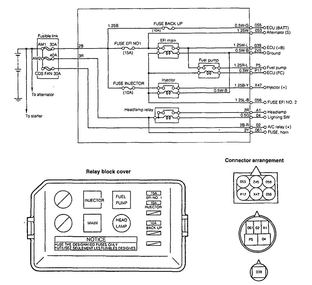 | EFI NO. 1 | 15 | Main relay, Alternator |