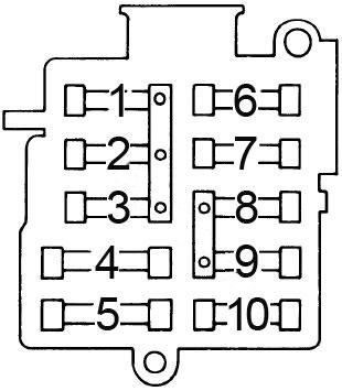 Power window relay, brake warning light, hot temperature indicator light (engine), door ajar indicator light, oil warning light, electric trunk, lid, seat belt interlock, ignition feed