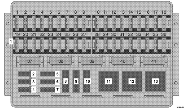 | 7 | 15 | Horn, heated rear window, air recirculation switch, optional equipment relay (terminal 15) |