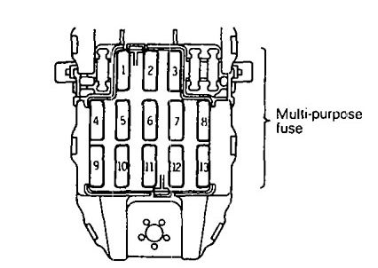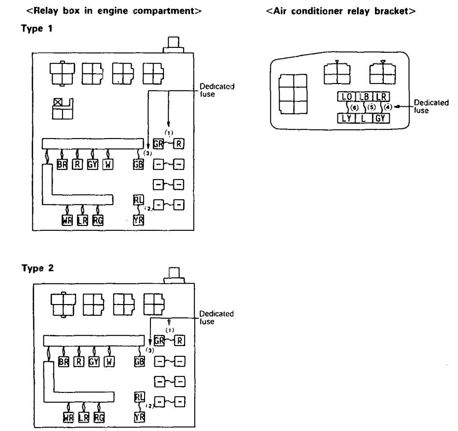 Power window relay, defogger relay, deffoger timer, defogger switch, heater relay, blower switch, auto compressor control unit, DRL control relay, DRL control unit