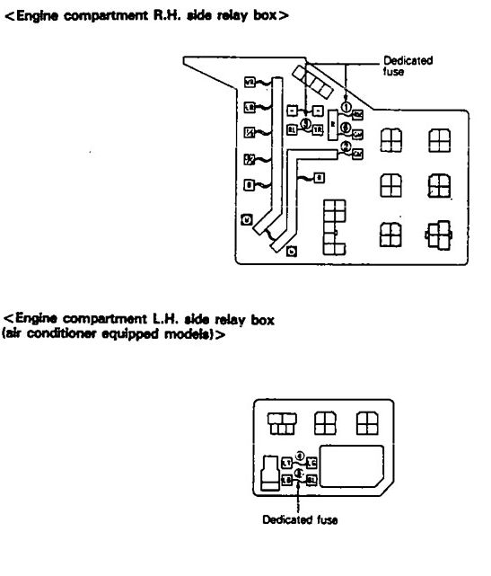 4-speed automatic transaxle control unit, dome light, door-ajar warning light, foot light, ignition key illumination light, luggage compartment light, MPI control unit, radio, ABS relay, automatic seat belt control unit, ABS control unit door lock control unit