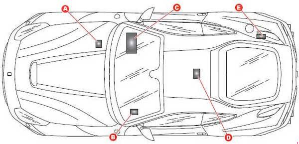 | C | Fuses and relays in the passenger compartment on passenger side |