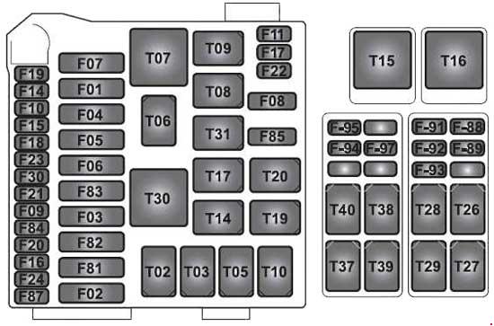 | F31 | 7,5 | INT/A for dashboard ECU, Body Computer Node and air conditioning and heating relay |