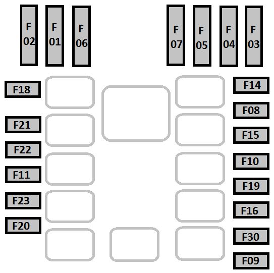 | Radiator fan first speed (versions with manual climate control system) | F06 – MAXI FUSE | 30 |