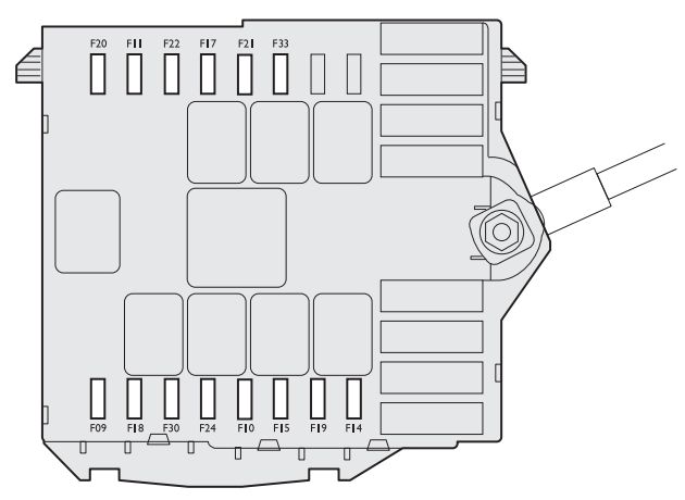 | Power windows control unit (right rear window motor) | F34 | 20 |