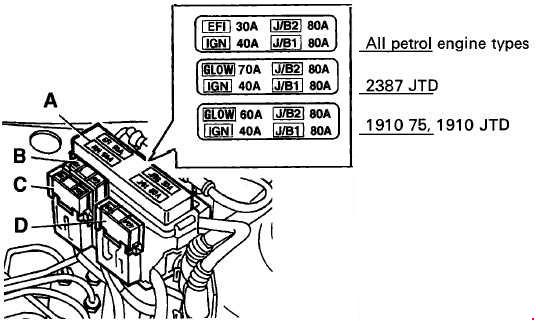 Fiat Marea – fuse box diagram – location – engine compartment – diesel