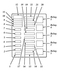 | 12 | 20 Circuit breaker | Electronic shift motor 4-wheel drive, power door locks, power lumbar, tailgate power window |