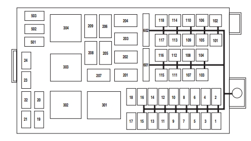 | 302 | Full ISO relay | Air compressor (non-Police vehicles only), RUN/ACC relay (Police vehicles only) |