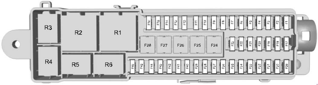 | F11 | 30 | Body control module power feed (as of 2014), Voltage quality module (as of 2017) |