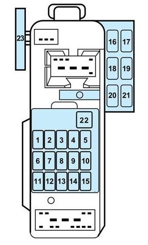 | 13 | ROOM | 10 | Clock, interior lamp, luggage compartment lamp, safety belt warning chime, radio power, engine controls, remote anti-theft personality (RAP) module, shift lock, courtesy lamps, starting system, instrument cluster (ZX2) |