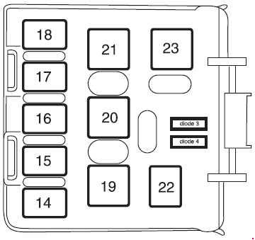 | 16 | 15 | Headlamp switch (2001-2003), Foglamp switch (2003), Park lamps (2004-2005), Autolamp parklamps (2004-2005), Front foglamps relay coil (2004-2005) |